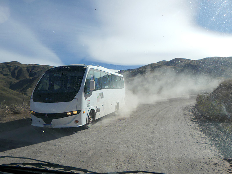 After a night at the YPF petrol station in Carril we drive through the Quabrada Del Escoipe towards Cachi. It's a tarmac road until you get to the famous Cuesta Del Obispo. For about 16 kilometres the road is just sand and dust through all the sharp switchbacks. We had planned to stay on a campground in Cachi for a few days but disaster strikes and we end up with a major clutch problem.