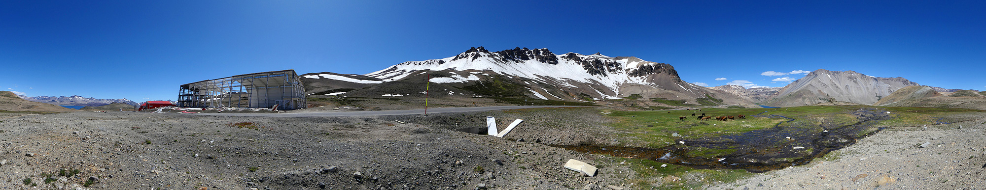 Zerstörte Wartungsstation am Paso Pehuenche - 360° Panorama
